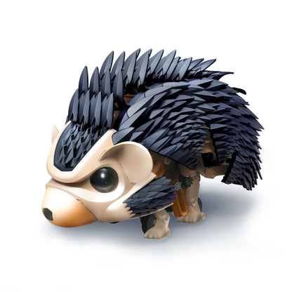 Build your own adorable robotic pet hedgehog! With the 172 building pieces in this kit, you can assemble a real robot that looks like a cute hedgehog. The robot has a built-in sound sensor and is programmed to react to different sounds. After you build it, you can play with it by making different sounds and watching it tumble, roll, spin around, bristle its spines, and scurry around. Clap once, and the hedgehog will roll into a ball and tumble backwards. Clap multiple times, and the hedgehog will count your claps and tumble as many times as you instructed with your claps. You can also get the hedgehog to bristle its spines and act in a playful way with different patterns of claps. The hedgehog’s eyes light up with LEDs. By building the robot, you will gain experience in the inner mechanical workings that enable the robot to move how it does. Learn about gears, motors, sound sensors, LEDs, and the other components of these funny little pet.